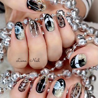 ブラックとシルバーのロックネイル ハンド ジェルネイル ネイルチップ オールシーズ ネイルサロンvivi所属 ネイルサロン viviのネイル デザイン ミニモ